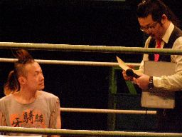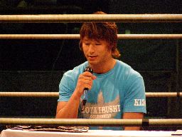 リング上では5/1・KAIENTAI-DOJOでのインディペンデントワールドJr選手権調印式(右写真)。挑戦者はPSYCHO。