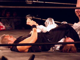 動かなくなった松井をゴージャスはカバー(右写真)、カウント3。