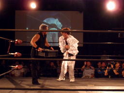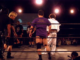松井にはメタル・ヴァンパイヤが帯同。しかし和田京平が厳しく注意して下げさせる(左写真)。