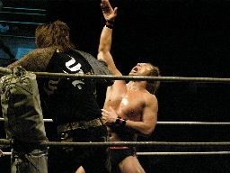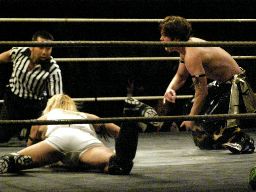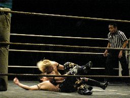 マイケルをポイズンの上に乗せる(右写真)と3カウントが入る。