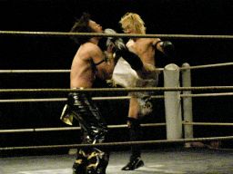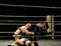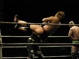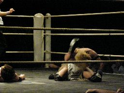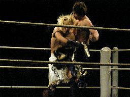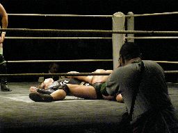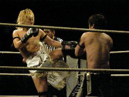 KUDOヒザ蹴り(右写真)、コーナーに上る。