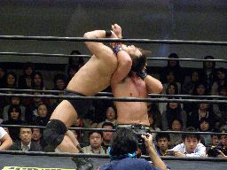 高木サンダーファイヤーパワーボムに行くが大鷲はリバース(右写真)、HARASHIMAにタッチ。