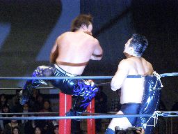 大鷲高木にヒザ蹴り、逆水平(右写真)。