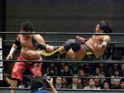 欠場者が多いのでしかたない(出てる人間でもMIKAMIとKUDOはかなりひどい腰痛みたいだし)が、メイン以外に事前に「これは!」というカードがなかったなあ。MIKAMIvs坂井はいろいろ意表を突いてくれたし、他の試合も見れば見たで楽しめたんだが。