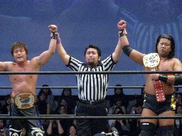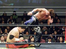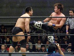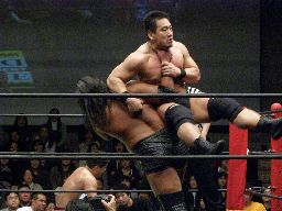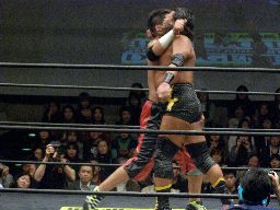 高木は蒼魔刀をかわすと投げっ放しジャーマン(右写真)、石川にタッチ。