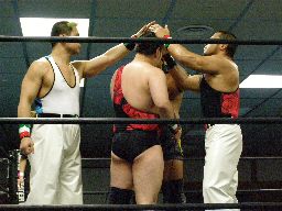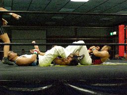 PIZAのSTFとトーゴーのクロスフェースが同時に(左写真)。大鷲カット。トーゴーはアントンにタッチ。