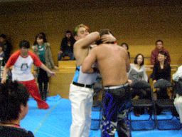 イタリアン・インパクトを狙ってアントンが大鷲を肩車で担ごうとするが上がらない(右写真)。10分経過。