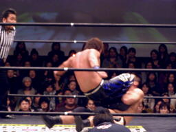 高木リフトアップ式スピコリ・ドライバー、というより垂直落下のパワースラムだな、こりゃ(左写真)。しかしカウントは2。