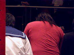 大鷲高木に張り手(左写真)「おい、お前よ、こんなにいっぱい家族がいるのに何言っちゃってんだよ?俺様下のモニターで見てて、いても立ってもいられなくなって上がって来ちゃったじゃないか!」
