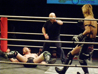 長井ヒザ固め(左写真)、鳥羽ロープ。鳥羽ロストポイント1。
