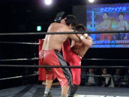 石川張り手(左写真)、HARASHIMAダウン。ロストポイント1。HARASHIMAカウント6で立つ。