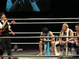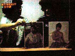 「心・技・体」のライヴがスタート(右写真)。曲はなぜかリンドバーグの「今すぐkiss me」。まったくの口パク。