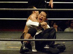 趙雲足をすくってレッグロック(左写真)、諸橋十字に切り返す、ブレーク。