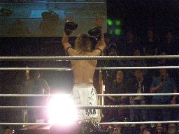 鳥羽パンチ一閃(左写真)、カリビアン・コムはダウン、レフェリーがストップ。