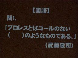 亜門「じゃあまず国語の問題の答え合わせから行こうか。歴史上の有名な人物の残したことわざに関する問題だな(右写真)。これは武藤敬司さんの言葉だ。一圭わかるか?」
