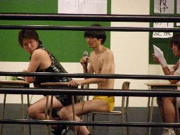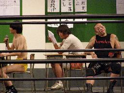 休憩明け、亜門が「控室A」に入っていくとそこにはNOSAWA、MAZADA、TAKEMURAの東京愚連隊が。なぜかミニテスト回答中(左写真)。