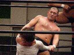 先発は高山と趙雲。趙雲チョップ(右写真)、高山は張り手で返す。趙雲はアントンにタッチ。