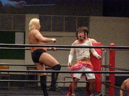 ロープに飛ぶ、高山ビッグブーツ(右写真)。アントンは726にタッチ。