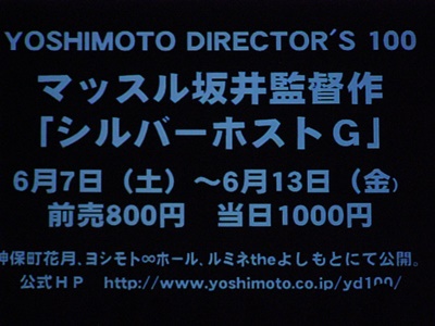 坂井が吉本の「DIRECTOR'S 100」という企画で映画を撮ったらしい。あくまで「マッスル武道館の資金のため」(本人談)