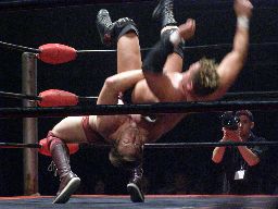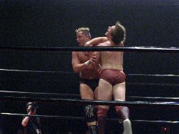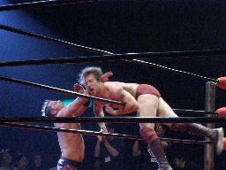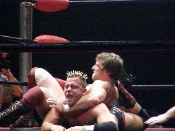 エビ固めの応酬(右写真)、いずれもカウント2。