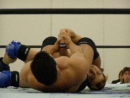 HARASHIMA腕にエルボー、マウント取って腕攻め(右写真)。ワキ固めはサミングで脱出。