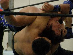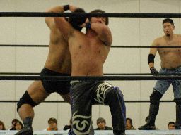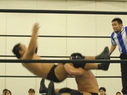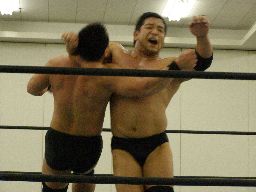 TAKAみちのくドライバーU(左写真)、関本と真霜がカット、ここで時間切れ。