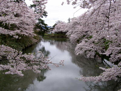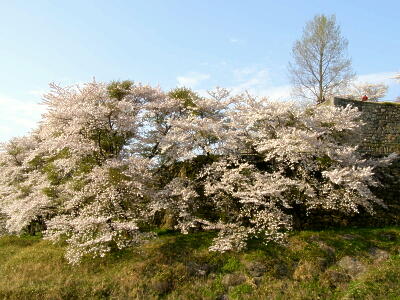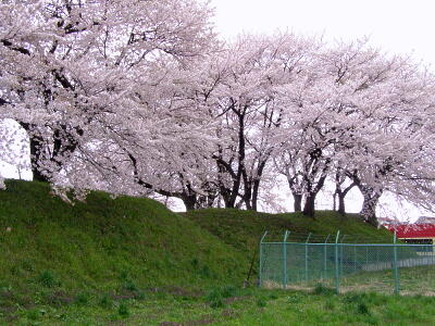 気を取り直して会津若松駅前のバスターミナルへ。時間をセーヴするために周遊バスを使うことに。1dayパス700円を購入したら路線図をくれた。これによると会津若松城北口を通り越してさらに2つほど行くと若松城の総構の跡である天寧寺町口土塁の近くで停まるらしい。それはまだ見たことない。そっからスタートすることとしよう。行ってみるとなかなか立派な土塁が。桜も満開。