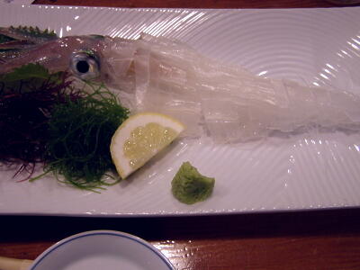 唐津で夕食。さすがに毎回「つく田」は行けないが、せっかくなのでイカの活造り。