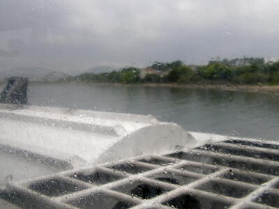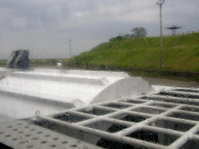 最初は羽田まで京急で行こうかと思ってたが、確実に座って行きたくなり新宿からのバスに変更。6時15分のバスで乗車、45分に着いた。大幅に時間が空いたので久々に羽田空港の食堂「新大和」で和朝食。大分行きのJAL1783便は8時5分発、9時40分着の予定。が、15分遅れて9時55分の着。空港から大分市まで行くホーバークラフトは連動して10時5分の発に。地上を走る様子。
