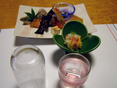 部屋に帰って食事。前菜。