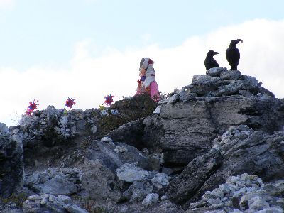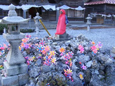 地蔵と山。