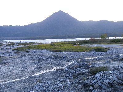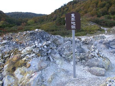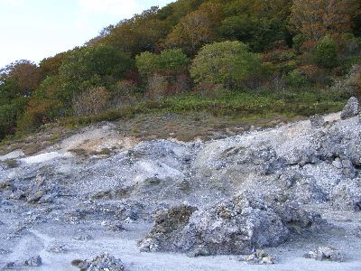 その脇にいわゆる恐山的風景。つっても硫黄温泉の平原なだけだが。