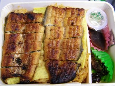 浜松駅の「自笑亭」で買った駅弁「濱松うなぎ飯」を食べて名古屋には12時10分着。