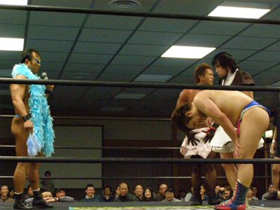 東山線で中村スポーツセンターに移動し、ようやく本来の目的のDDT観戦。TV中継も雑誌のカメラも入ってないのでまたやりたい放題。こういうシチュエーションではお笑い試合の方が面白い上に、マジメを期待された試合で動きが途中で悪くなる選手がいたりして、地方興行特有の悪いパターンに陥った感じ。三位一体の術でディーノやマイケルのカードを優先して組むのもわかる気がするなあ。観戦記はこちら。