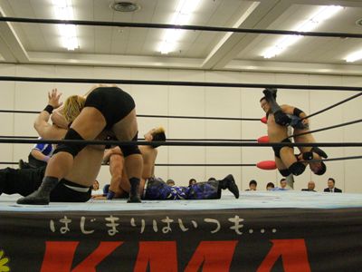 広島産業会館は市電の南区役所前からすぐということだったが、すぐそこにあるのは「西展示場」で、それは今日の会場じゃないらしい。しばらく周りをうろうろすると横断歩道の向こうに「東展示場」。前に大日本のトラック。ここだ。わかりづらいなあ。三団体合同興行ということだが、DDTからは変態団とディーノがらみ、KAIENTAI-DOJOからはΩの2試合、大日本からは典型的な第1試合と蛍光灯デスマッチ、そして三団体のトップどころが揃った6人タッグの全7試合。KAIENTAI-DOJOの試合はどうにも地味で印象に残らない。DDTは下ネタだけじゃないか、という声もあるようだが、今一番おいしいネタだし、飯伏や柿本が欠場してるし、タッグ戦線はフリー選手中心だしということでこれは仕方ない。で、蛍光灯デスマッチは最前列で見るもんじゃないなあ、やっぱり。破片は飛んで来るわ、エグい流血は目の前で行われるわ。「頑張ってる」のはわかるけど、これは違うなあ。ECWも生で見たらこんなんだったのかなあ?観戦記はこちら。試合後は柳田夫妻と駅前の居酒屋「さかな市場」で飲み。昔の友達に会うのはいいことだ。0時過ぎにホテルに戻り風呂入って寝る。