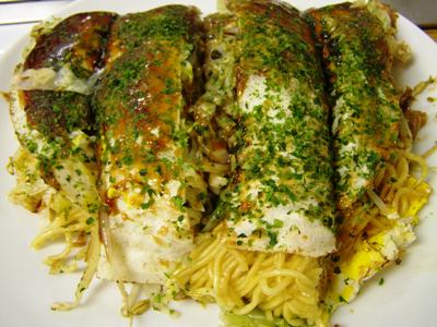 駅ビルに戻るとお好み焼きの匂いがしたので2階に上がってみる。10時40分だがもう営業していた。いつも行列ができている「麗ちゃん」もまだスカスカ。早速入ってシンプルなそば入りを。・・・ここなんでそんな人気なのかわからない。作り方も雑だし、そばにケチャップ付けてるのが特色と言ってもそんなに味はしないし。食べやすく切ってくれてるから駅で食うのには適している?そんな理由で行列はできないだろうなあ。