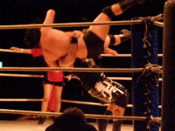 NOSAWAバックドロップ(右写真)、カウント2。NOSAWAヘッドバット、しかしこれはNOSAWAの方が痛かったらしい。
