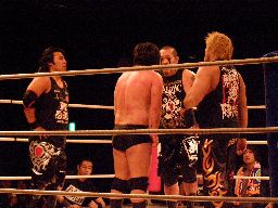 大家「これからは全日本を中心に東京愚連隊第4の男として暴れて行きたいと思います!」それを聞いた東京愚連隊は一転大家を攻撃。石川が救出に入る。石川は3人を追い払うと「ユニオンのリングで勝手やってるんじゃねえよ。俺が勝手なことはさせない!」