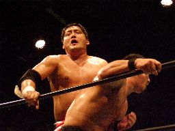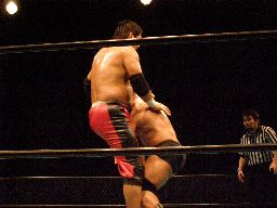 石川バックドロップ(右写真)、カウント2。15分経過。