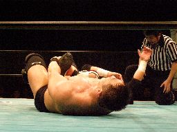 そしてダブルアームスープレックス(左写真)、カウント2。