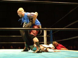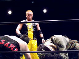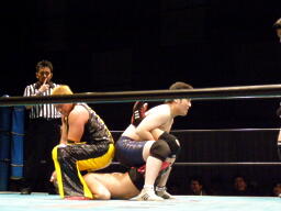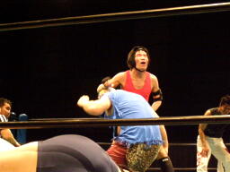 ササメに斗猛矢がキャメルクラッチ、EDが逆エビ(左写真)。