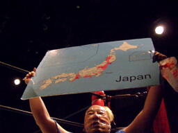 7番目、滋賀県・田中安全プロレスのたなかマモル入場(左写真)。人気高い。