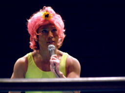 マサ子マイク「チェリー先輩お久しぶり。相変わらず凄く化粧盛ってますねー。アンタのその盛り過ぎの化粧見てると胃がムカムカするわ。せいぜい覚悟なさい。」(左写真)