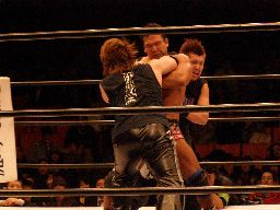 乱闘(左写真)。どっちにも思い入れがないから「対抗戦っていつもこうだよなあ〜。見苦しいし、昔からちっとも変わり映えしないなあ」としか思えない。こういうのを「熱い」とか「買いだ」とか煽るマスコミ(1誌だけだが)は団体の意図を宣伝してあげてるだけ。