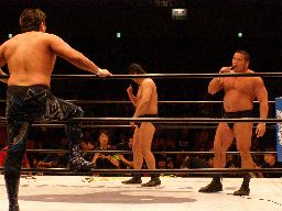 中西ミサイルキック(右写真)、KAMIKAZEは大森にタッチ。