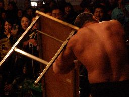 大森は中西にテーブルを投げつける(右写真)。
