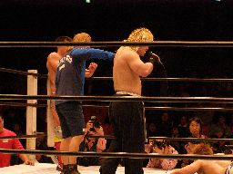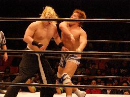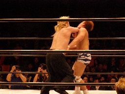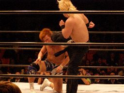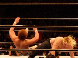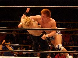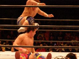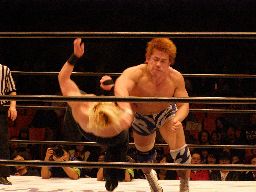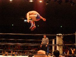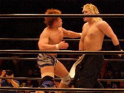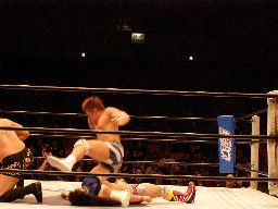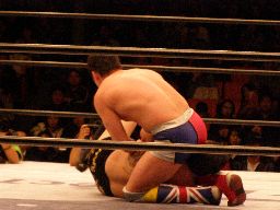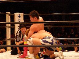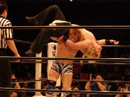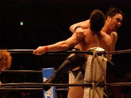崔コーナーから那智の滝、佐藤かわす(右写真)。佐藤バック取ってジャーマン。