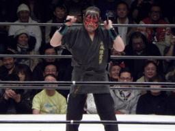4番目のシークレットゲストはなんとザ・グレート・カブキ。ヌンチャクパフォーマンスを披露(右写真)。しかし試合に参加する前にみんなから追い立てられて自ら退場。最後に本部席のマイクを取ると「日向、第二の人生頑張れよ。」と。第二の人生に成功している人間からのメッセージ。