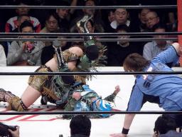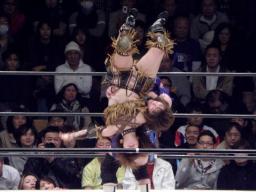春山ロープに振る、コマンドが春山にクリスト(右写真)、そしてスクールボーイ、カウント2。