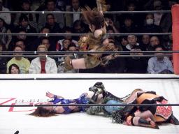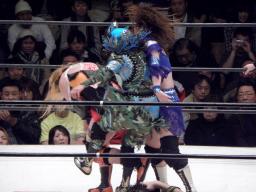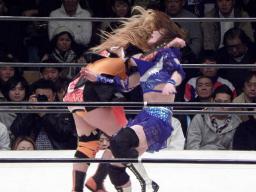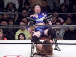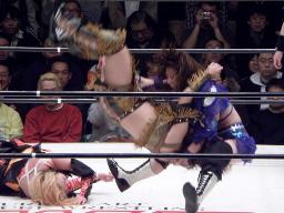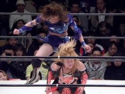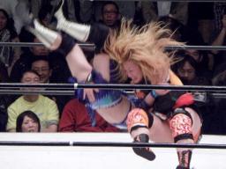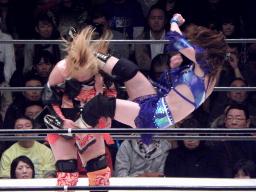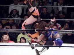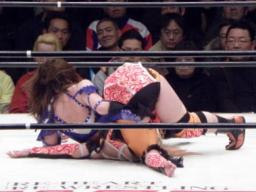 キューティーからも(左写真)。ダイビング延髄ニーは元々キューティーの技だった。